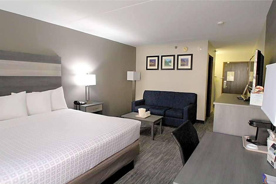 The Baymont by Wyndham Lafayette - Purdue University offers a variety of room types to accommodate your specific needs. Whether you're traveling with a group of friends or just looking for a comfortable space for yourself, this hotel has you covered. Choose from the spacious One-Bedroom King Suite, complete with a king-size bed and room for three adults and two children. If accessibility is a priority, the Queen Room with Disability Access provides a comfortable and convenient stay. For smaller groups, the King Room and Queen Room both offer triple occupancy and a cozy atmosphere. And if you're traveling with family or friends, the Queen Room with Two Queen Beds is the perfect choice, accommodating up to four adults and three children. Whichever room you choose, you can expect a non-smoking environment and a sizeable room with all the necessary amenities for a comfortable stay.